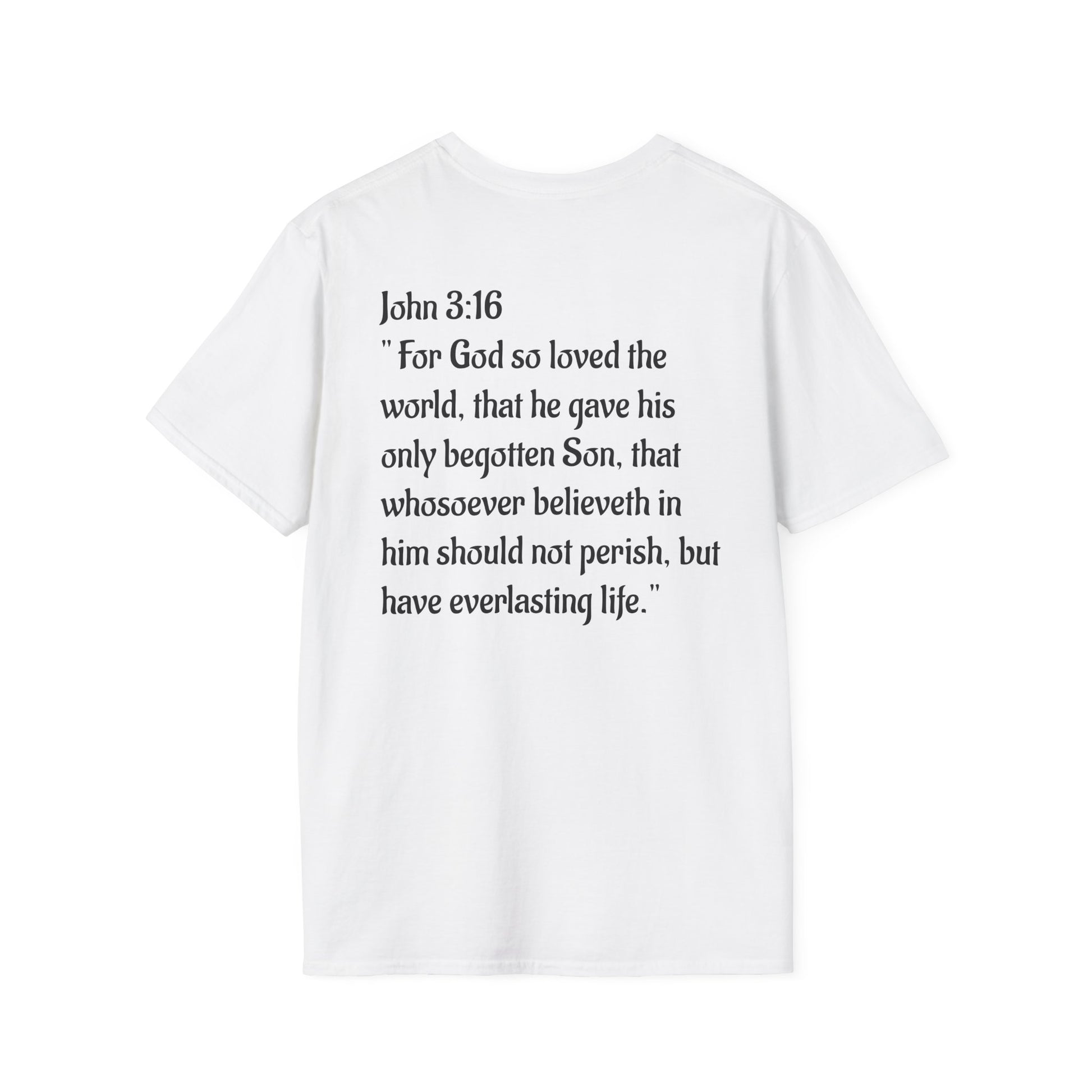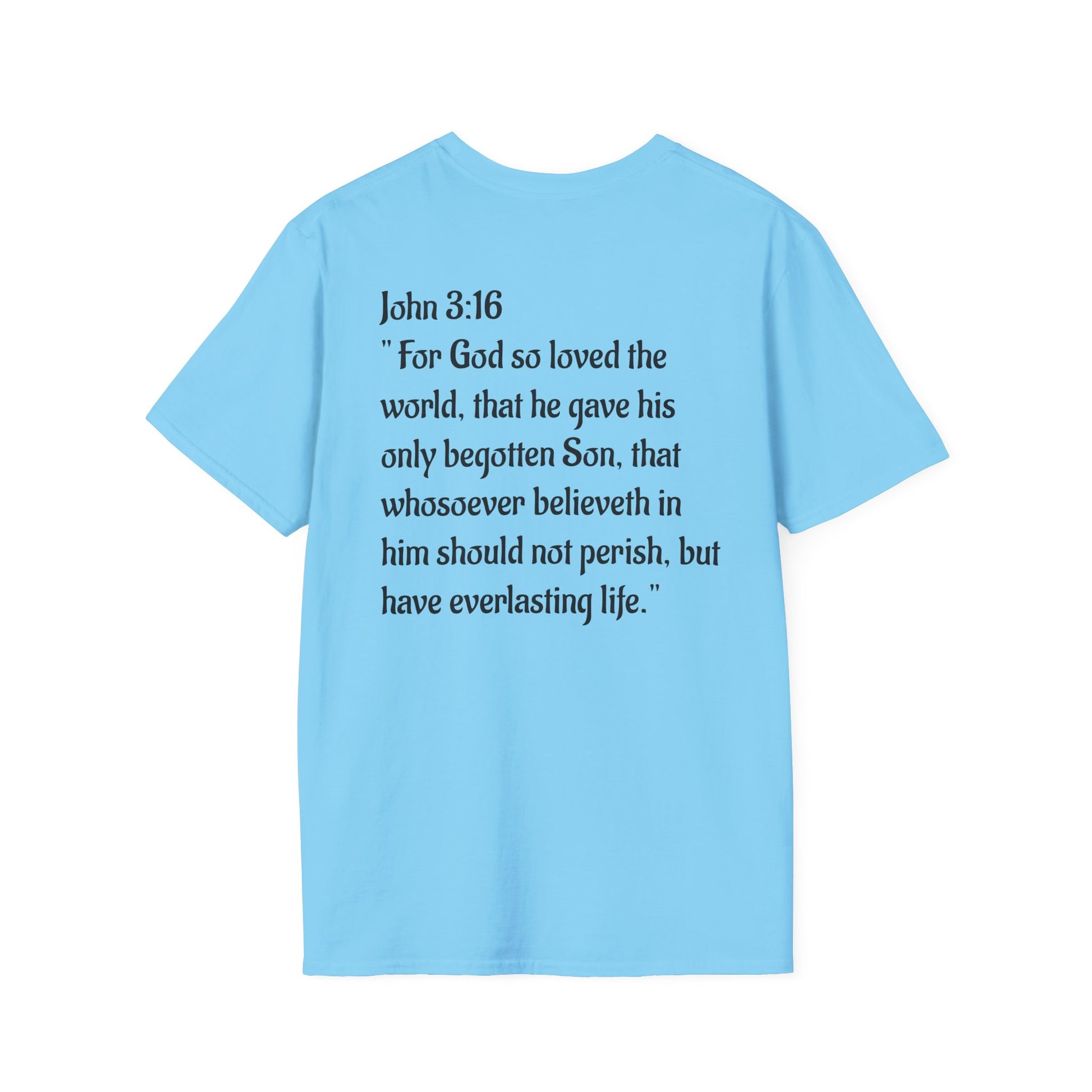 Embrace your faith with this timeless Unisex Softstyle T-Shirt. Featuring the uplifting phrase 'Jesus Is Lord' on the front and a powerful verse from John 3:16 on the back, this t-shirt radiates positivity and purpose. Made from high-quality, lightweight, and ethically sourced cotton, it ensures comfort no matter the occasion. Perfect for casual outings, church gatherings, or simply spreading good vibes, this shirt is a must-have for anyone who cherishes their spirituality. Ideal for gifting during holidays such as Easter, Christmas, or any religious celebrations, it serves as a statement piece that speaks volumes about your beliefs.